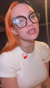 A través de sus historias de Instagram y mientras cantaba un tema propio, mostró su nuevo color de pelo y los cambios que se realizó: se sacó el flequillo y con una raya al medio bien marcada, separó su pelo lacio mitad pelirrojo y mitad negro, como siempre marcando su estilo muy personal.